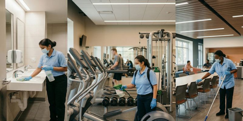 Sanitizing public restrooms, gym facilities, and communal rooms.